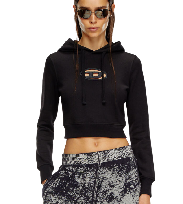 Questa felpa con cappuccio da donna è decorata con un logo Oval D tagliato al laser e ricamato ad arte.