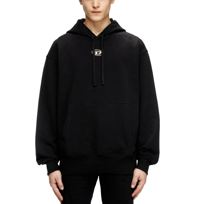 Cod: A09856 0BMBJ 9XX Felpa con cappuccio da uomo dalla vestibilità loose, realizzata in jersey di cotone garzato. Il modello è illuminato dal logo oval D color argento, creata con una tecnica di stampa a iniezione, e completato con una coulisse allungata sul cappuccio. Composizione: 100%Cotone, Costina 95%Cotone 5%Elastan Loose fit Cappuccio con coulisse Tasca a marsupio Polsi e orlo a costine Colore: Nero