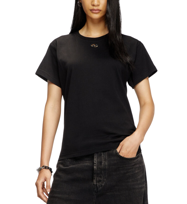 Cod. A17736 0NIAX 9XX Realizzata in jersey di cotone biologico, questa T-shirt girocollo da donna presenta una silhouette regular con bordi a coste. Un piccolo logo Oval D cut-out al centro del petto aggiunge un dettaglio iconico. Composizione: 100%Cotone, Costina 95%Cotone 5%Elastan Regular fit