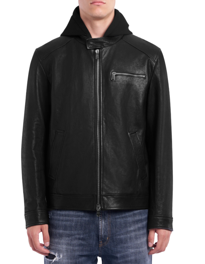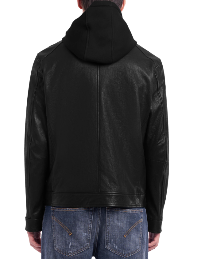 Cod. UJ977 PL0392U XXX DU W25 999 Biker slim con collo a listino, cappuccio in neoprene staccabile, allacciatura e taschino con zip, tasche con maxi filetto diagonale. Nappa. Logo Dondup. Made in Italy Materiale: 100% Pelle di agnello Colore: Nero