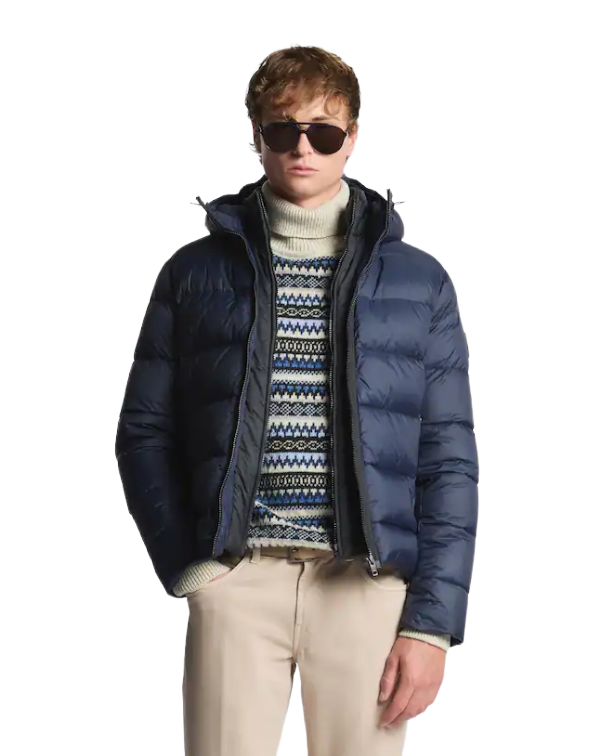 Cod. NAM32510620XMHU807 Iconico modello double front, questo piumino dai richiami street style presenta un cappuccio avvolgente. Realizzato in popeline di nylon calandrato con trattamento water repellent, è caratterizzato da una pettorina interna con collo in piedi. Dotato di una doppia chiusura con zip, presenta due tasche laterali con cerniera. Un capo dal mood dinamico e disinvolto, completato da un taschino interno. Made in Italy Fitting: regular Composizione capo: 100% poliammide, fodera 100% poliammide, imbottitura 90% piumino, 10% piuma, piumino nuovo classe 1 norma UE Colore: Blu