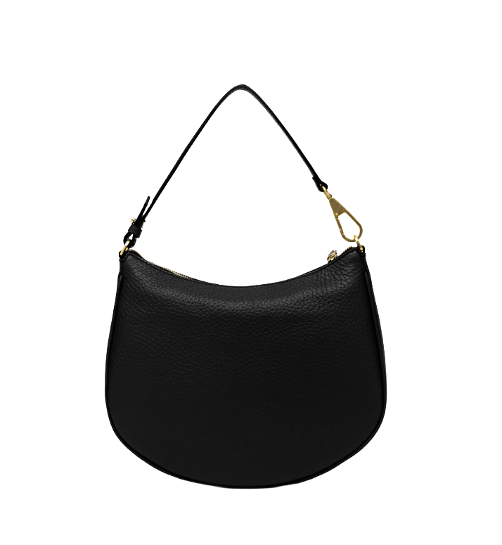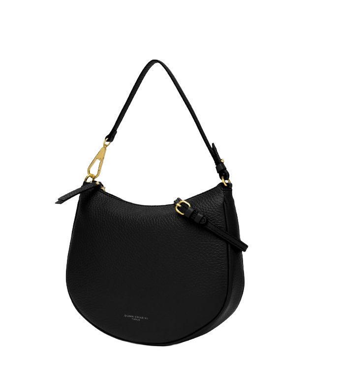 Cod. BS 10491 TKL 001 Con la sua elegante forma a semicerchio, Brooke by Gianni Chiarini Firenze è la borsa perfetta per chi cerca uno stile casual ma raffinato, ideale per l'uso quotidiano. Realizzata in pregiata pelle grana maxi, si distingue per la chiusura a zip, il manico removibile e una tracolla sottile in pelle tono su tono. Dimensioni: 31x26x6 cm. Colore: Nero