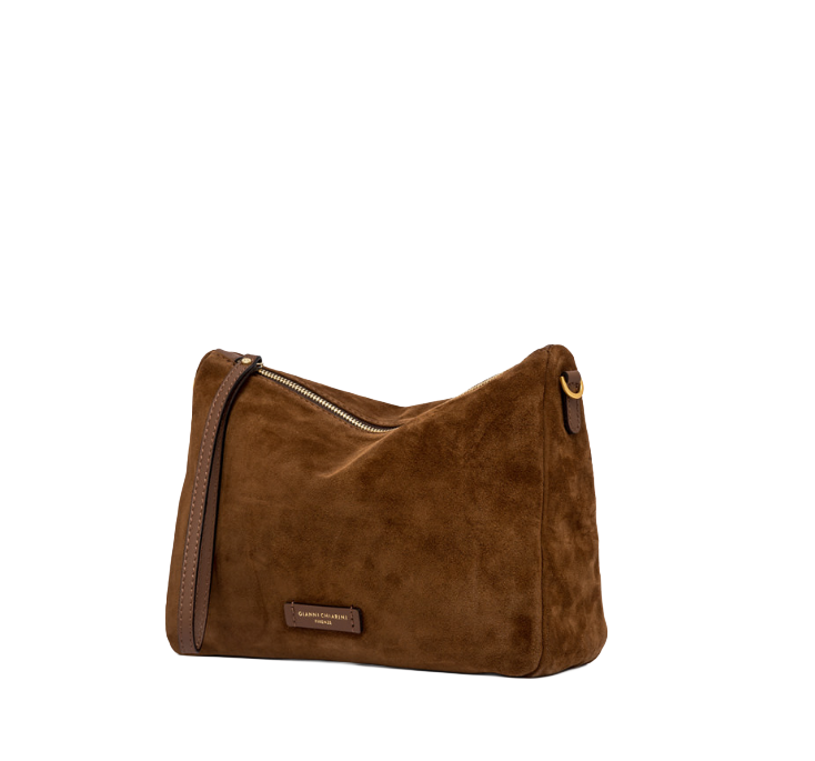 Cod. BS 10225 CM-PL 13827 La borsa Nora Pouch by Gianni Chiarini Firenze è realizzata in morbida pelle scamosciata. È dotata di un cinturino in pelle che permette di portarla al polso e di una tracolla regolabile, entrambi removibili. Presenta una chiusura con zip per una maggiore praticità. Dimensioni: 28x21x9 cm. Colore: Cognac Rig