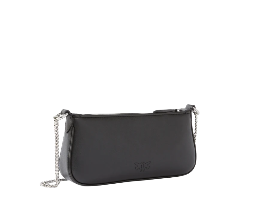 Borsa a spalla piccola Mini Half Moon Baguette in pelle con strass Pinko