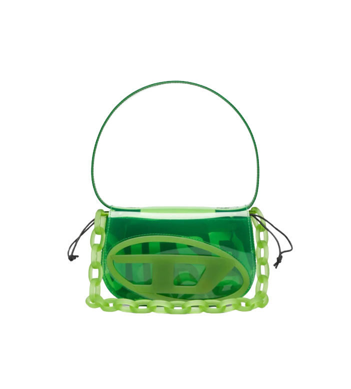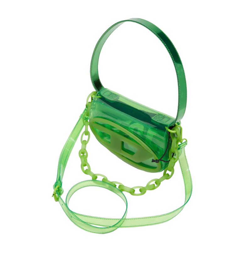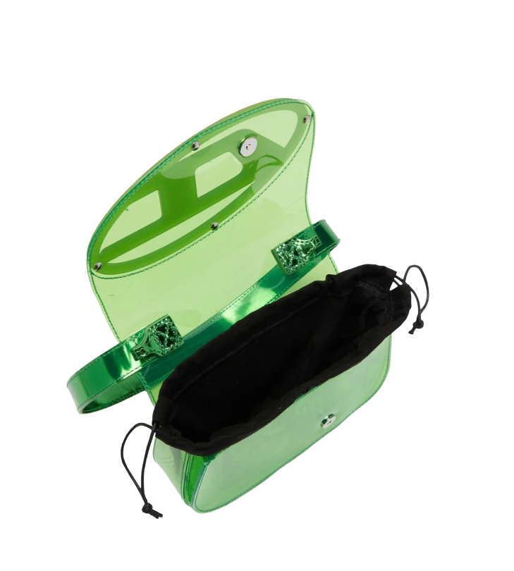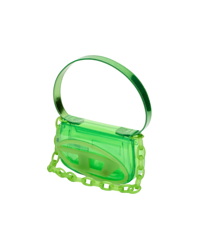 1DR-Borsa a spalla iconica in TPU trasparente Verde Diesel