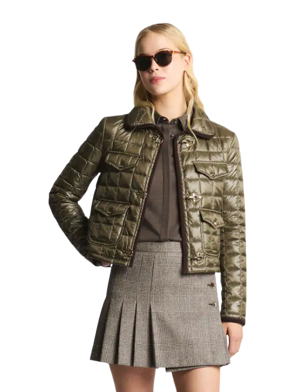 Cod. NGW76513510XOS0464 Interpretazione femminile che guarda all'heritage del brand, il 3 Ganci è caratterizzato da un colletto over e l'inconfondibile chiusura con i ganci che rimandano al mondo workwear. Questa versione imbottita in ovatta è realizzata in tessuto tecnico trapuntato a quadri. Un impianto a quattro tasche con pattina e bottoni automatici in metallo personalizzato completa il modello. Made in Italy Fitting: regular Composizione capo: 100% poliammide, fodera 100% poliammide, imbottitura 100% poliestere Colore: Verde