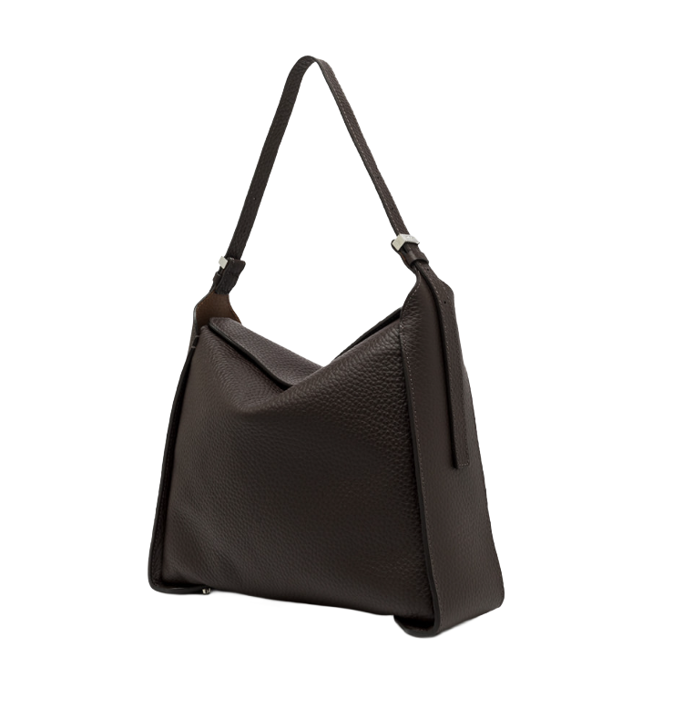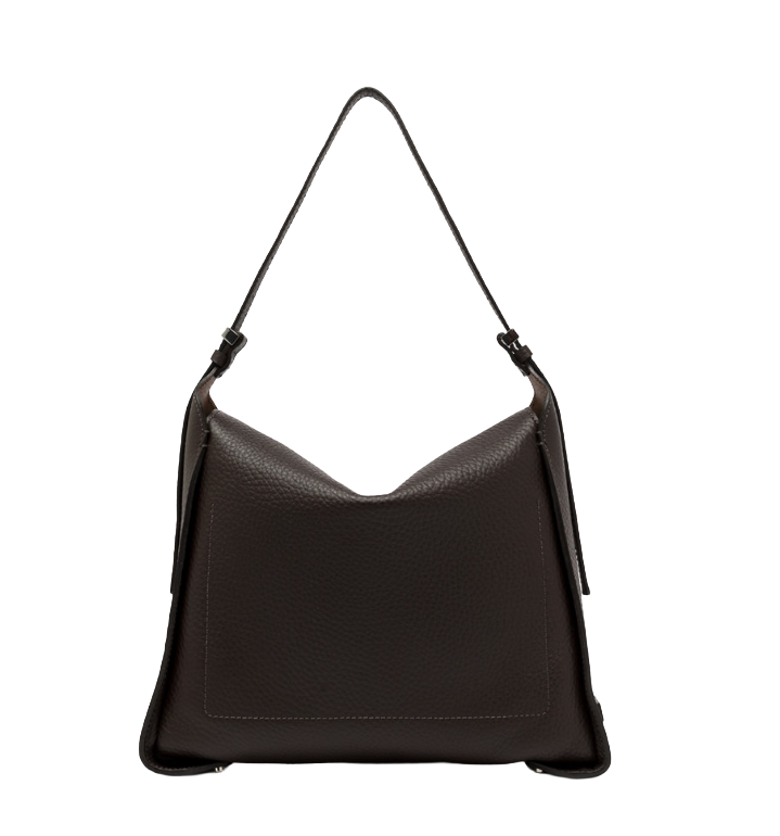 Realizzata in pelle double grana maxi, è caratterizzata da un design geometrico e da una pratica chiusura con patta a calamita.