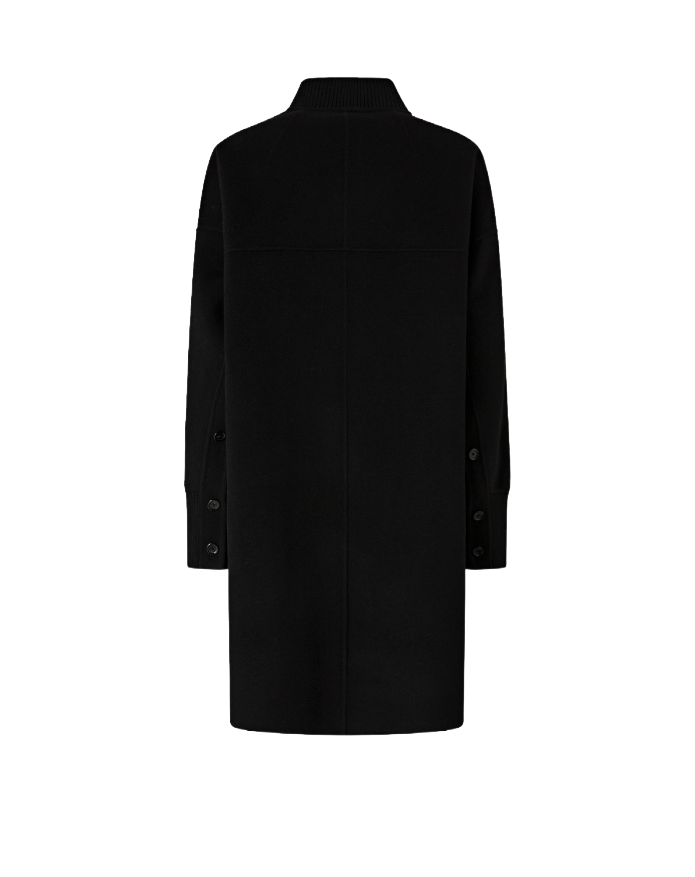 Cappotto cocoon foderato, dalla linea leggermente arrotondata, in panno double di misto lana.