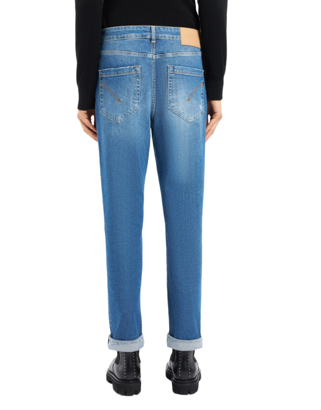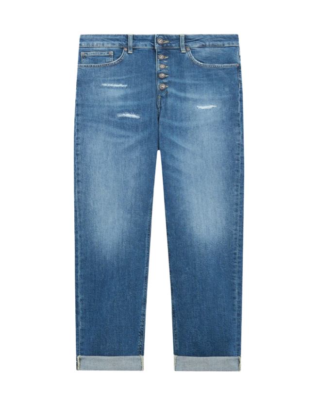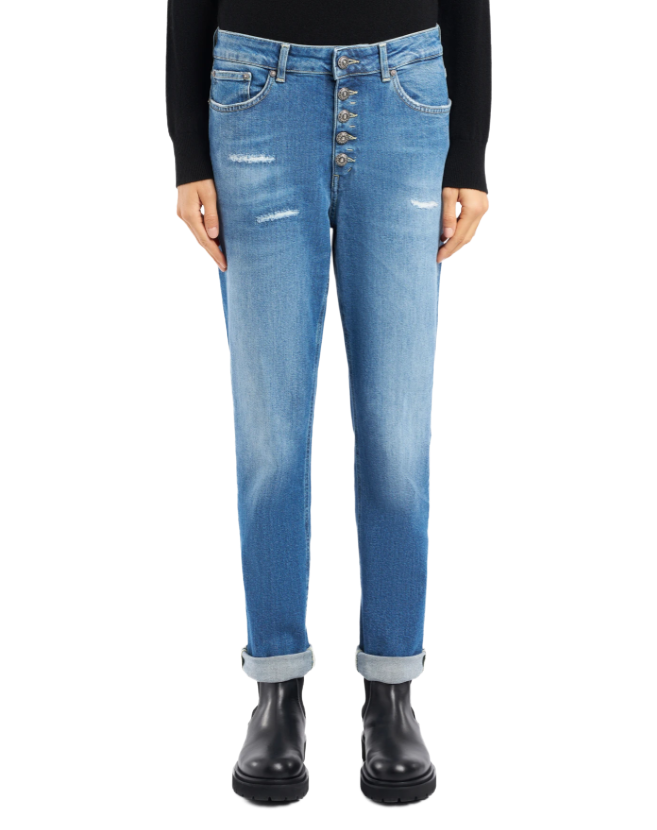 Cod. DP26BL DSK297D J25 DD W25 800Jeans Koons 30 inches cinque tasche loose fit, vita regolare, bottoniera gioiello.Denim stretch responsabile blu 11 1/2 oz. Lavaggio medio chiaro gots con rammendi. Logo Dondup. Made in ItalyColore: BluMateriale: 98% Cotone (organico) 2% Elastan (riciclato)